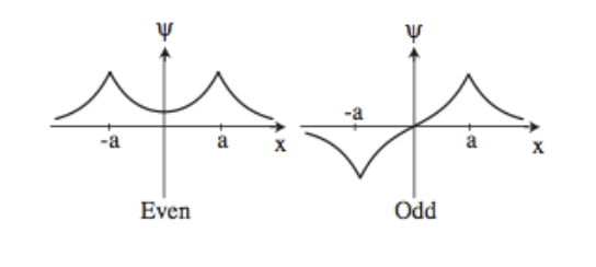 - Write an ansatz for bound state with energy \(E<0\). Because the potential is symmetric (even), you should expect to have an even and an odd wave function.
