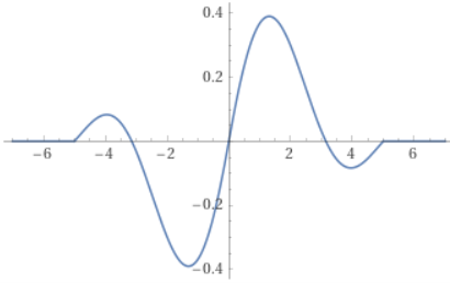 Separating this out into real and imaginary parts: \[\psi(x) = \begin{cases} \sqrt{\frac{3}{2b^3}}\;\left(\cos\left(\frac{p_0x}{\hbar}\right)+i\sin\left(\frac{p_0x}{\hbar}\right)\right)(b-|x|) & |x|<b \\ 0 & |x| > b\end{cases}\] Now we can easily plot this (\(b=5\)):